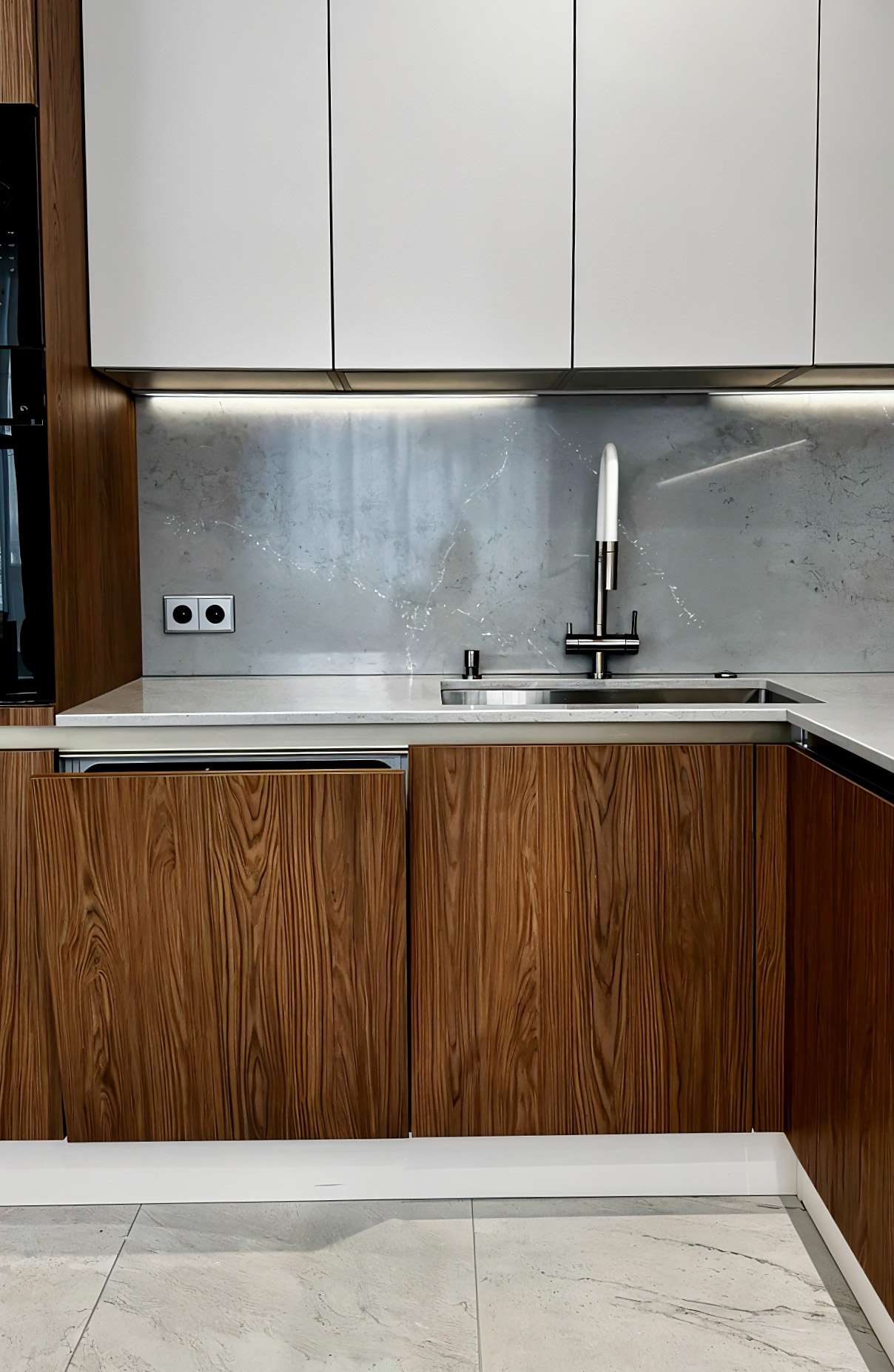 О проектеОписаниеСоздание уютного и одновременно функционального пространства для молодой семьи стало основой этого проекта. Мы разработали кухонный гарнитур, в котором гармонично сочетаются теплые древесные текстуры и нежно-кремовые фасады. Такое цветовое решение визуально расширяет помещение, наполняя его светом и ощущением домашнего тепла.